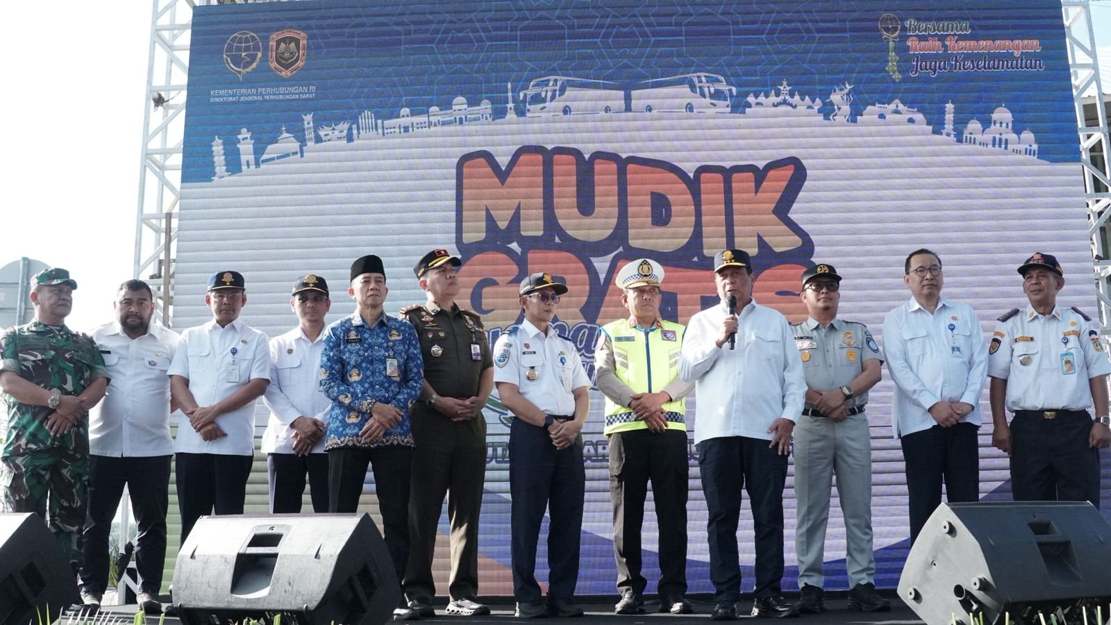 “Hari ini kita melepas saudara – saudara kita ke kampung halaman. Seperti tahun sebelumnya, pemerintah mengalokasikan dana untuk program mudik gratis. Ini adalah bentuk kehadiran negara untuk membantu masyarakat menjalankan ritual mudik,” ujar Wakil Menteri Perhubungan Suntana saat memberikan sambutannya.